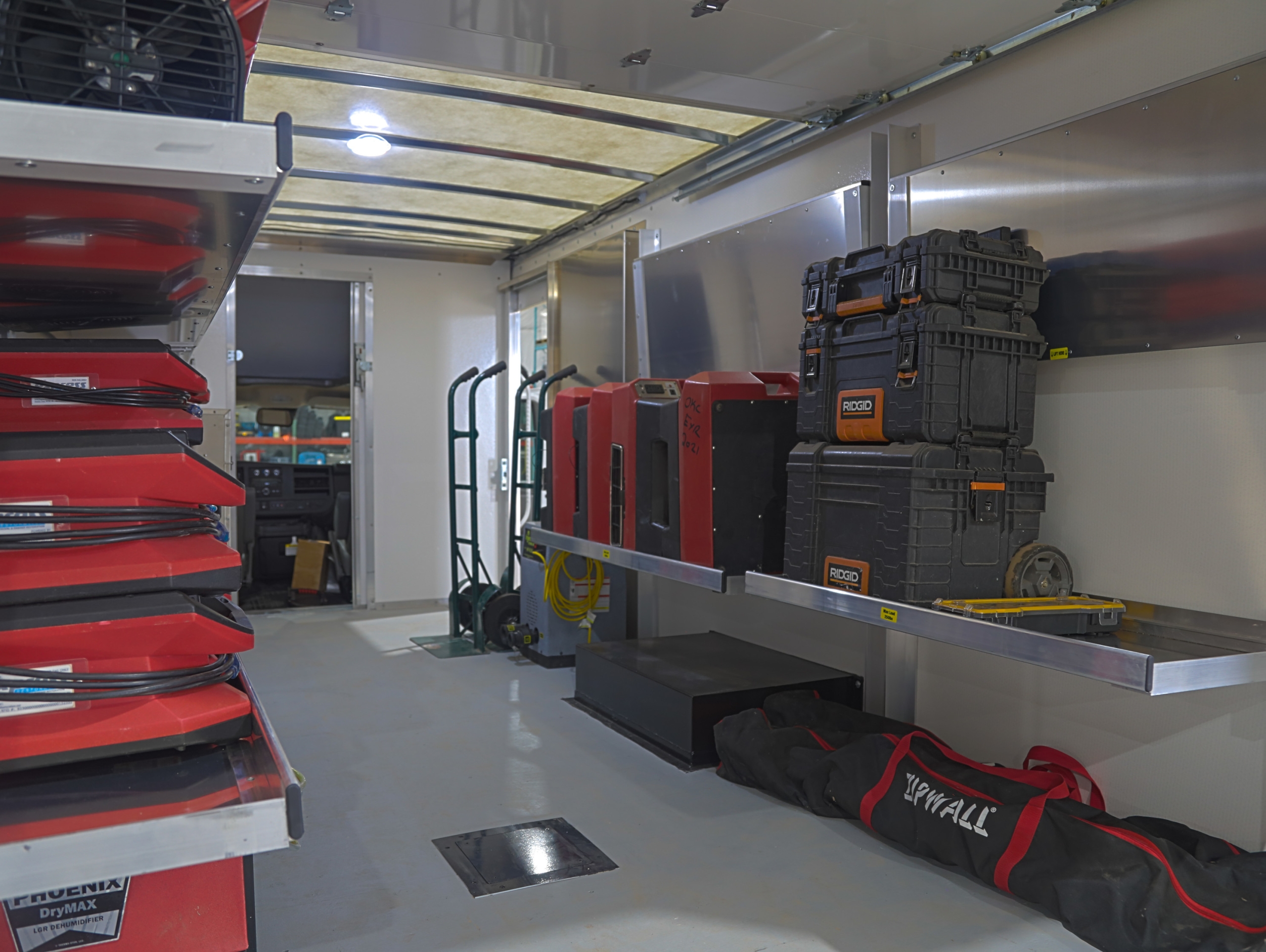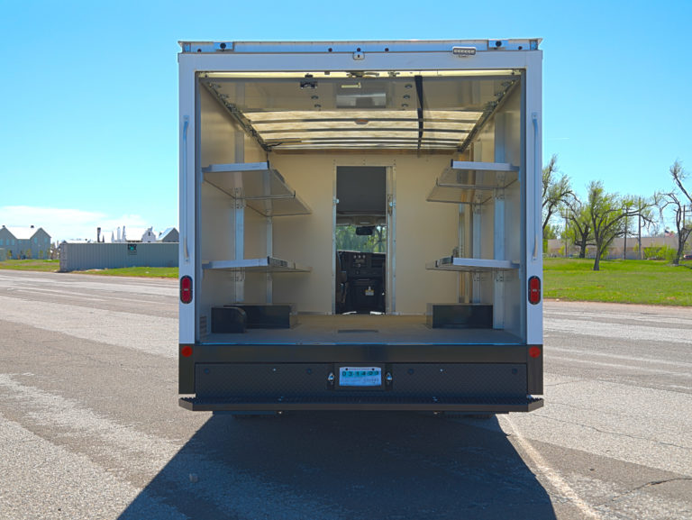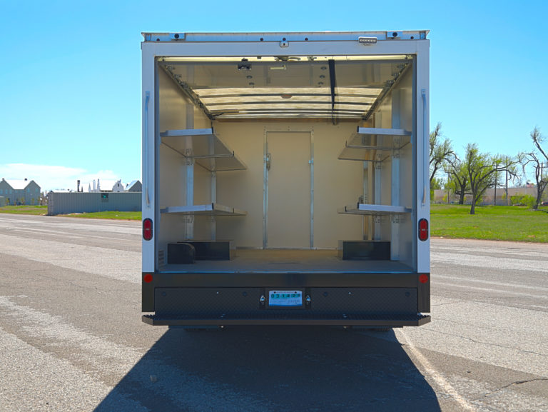 This 2023 Chevrolet Express 3500 Cutaway is a specialized high-volume delivery unit featuring a 16' Rockport CargoPort body. Built on the extended 177" wheelbase with a 12,300 lb GVWR, this truck is designed to meet rigorous parcel delivery standards, combining the 6.6L V8 engine with a comprehensive safety and organizational upfit.