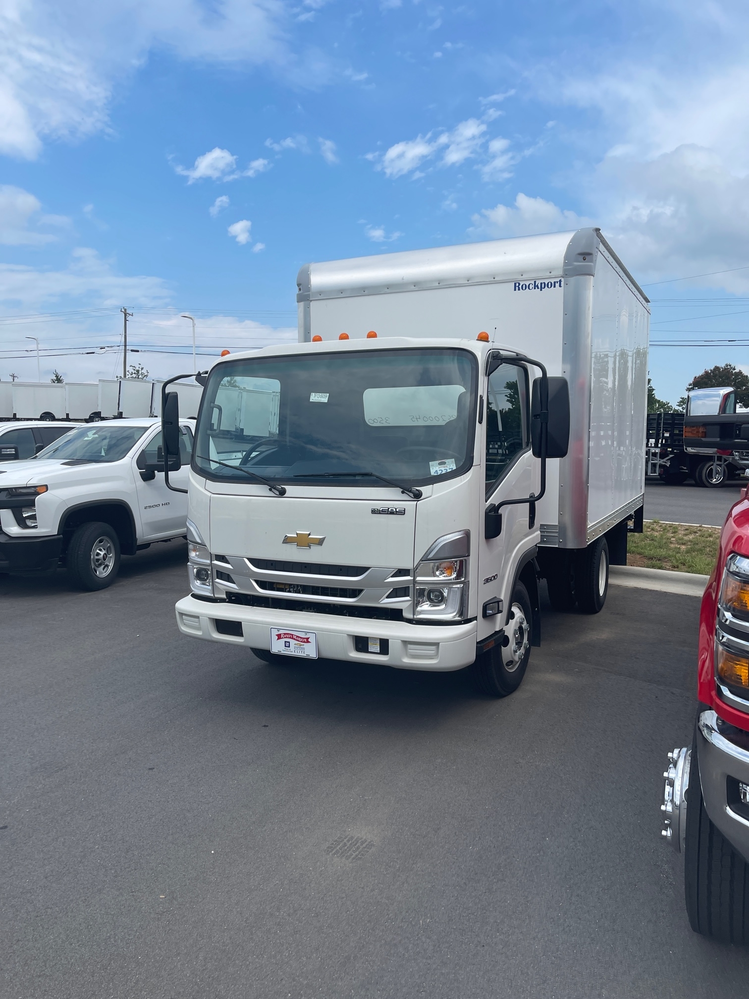 This 2023 Chevrolet 3500 LCF (Low Cab Forward) features a 12' Rockport CargoPort body. Combining the agility of a cab-over chassis with a 109" wheelbase and a high-durability Rockport upfit, this unit is designed for tight urban deliveries where maneuverability and rapid cargo access are the primary requirements.