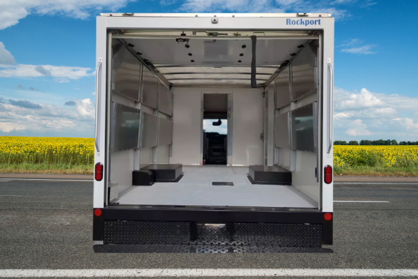 This 2023 Ford E-350 DRW features a specialized 14' Rockport CargoPort body. Built for high-efficiency parcel delivery, this unit combines the reliable 7.3L V8 "Godzilla" engine with a high-security upfit, including 360-degree cameras and advanced anti-theft protection.