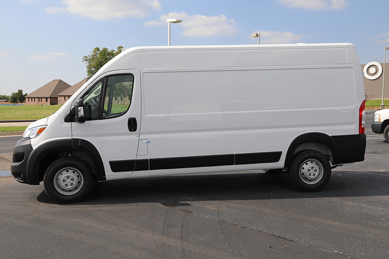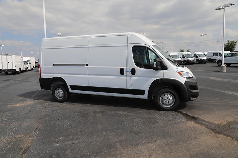 This 2023 Ram ProMaster 3500 High Roof (159" Wheelbase) is a "New - Never Titled" professional delivery van, specifically upfitted with the Delivery Package 2 and a full suite of Mopar® interior protection. With its High Roof configuration and specialized fleet tech, it is designed for maximum efficiency in last-mile logistics and high-volume parcel delivery.