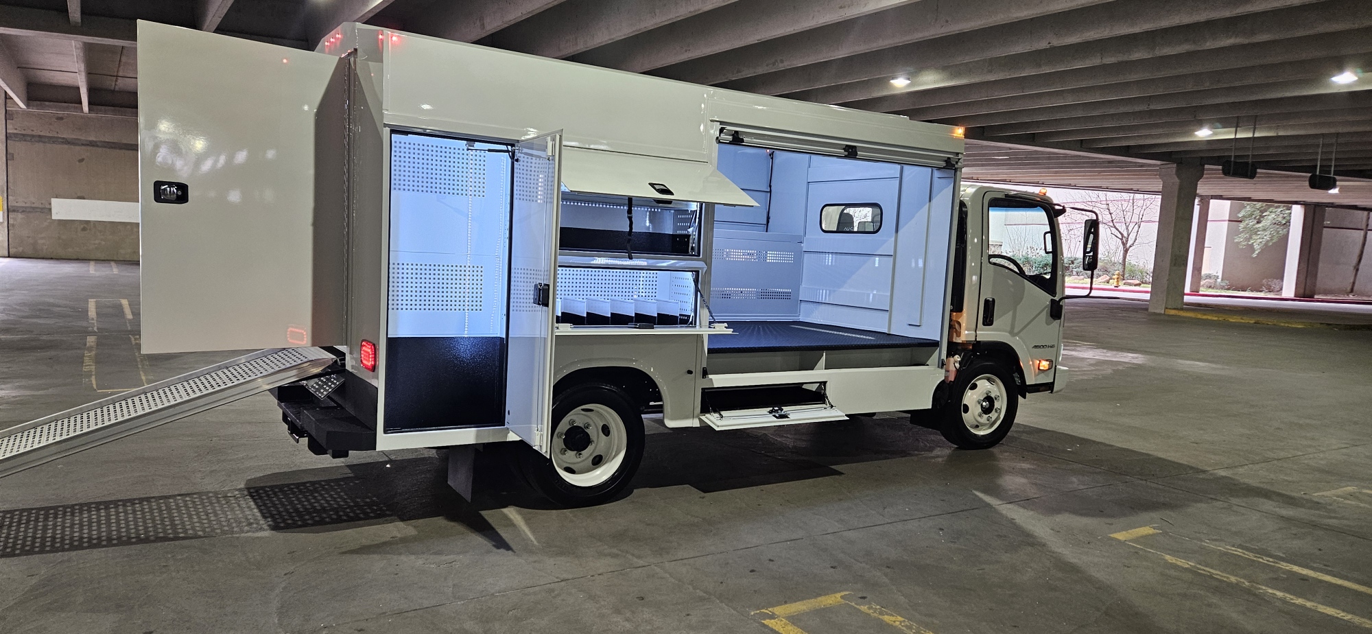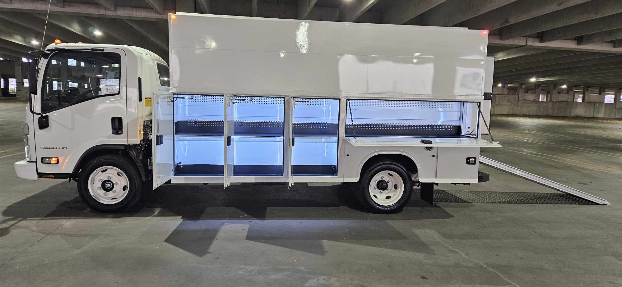 This 2024 Chevrolet 4500 LCF (Low Cab Forward) features a highly specialized G1 Gorilla Truck Body. Built on a maneuverable 150" wheelbase with a 14,500 lb GVWR, this unit combines the visibility and tight turning radius of a cab-over chassis with an advanced, asymmetric service body designed for maximum tool organization and secure cargo transport.