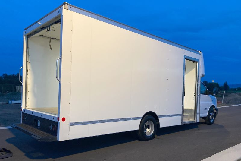 This 2025 Chevrolet Express Cutaway 4500 is a heavy-duty commercial delivery unit built on the extended wheelbase chassis with an 18' body and a 14,200 lb GVWR. Powered by the 6.6L V8 gasoline engine paired with an 8-speed heavy-duty automatic transmission, this truck delivers serious capability with the serviceability and low operating costs of a gas-powered platform.