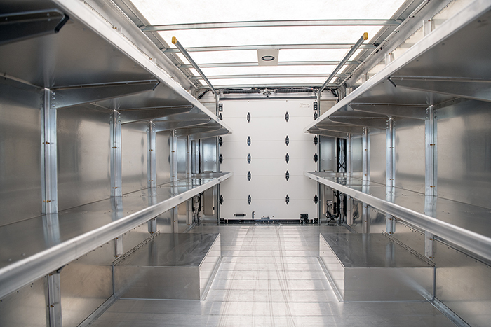 Secured Tech: Locking overhead compartment featuring a dedicated USB charger for driver devices.